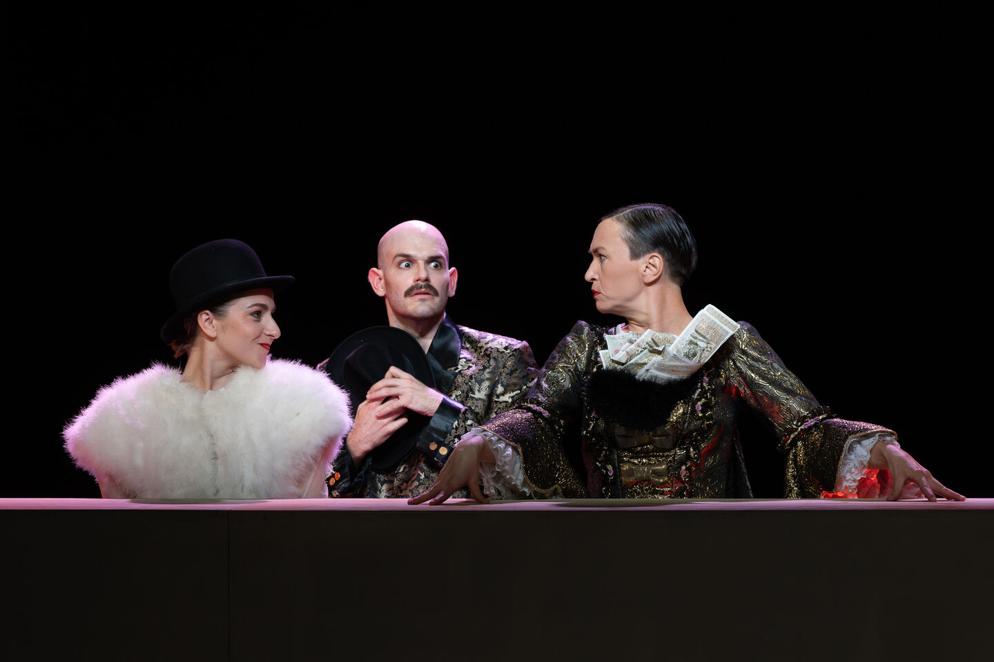 „Ob mit Playback oder Riesenpuppenköpfen, das Motiv der (theatralen) Fremdbestimmtheit zieht sich durch diese furiose Fiesta des Grand Guignol, der großen Puppe und all ihrer Anverwandten.“ (taz, 23. September 2025)